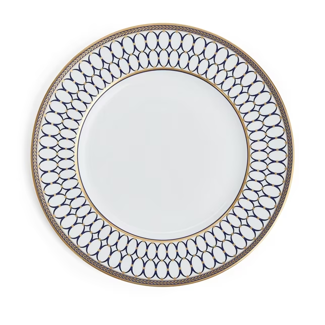 The famous Wedgwood cameo shape is the hero of this Renaissance Gold 27cm Plate. A dinner plate fit for any table setting, the silky white fine bone china is bordered with the expressive cameo shape, with cobalt blue and gold accents highlighting the neoclassical design. Finished with an indulgent gold trim and scrolled pattern border, this expressive plate is a perfect foundation for your blue and gold table setting. Complete the set with other items from the Renaissance Gold collection or mix and match with other Wedgwood collections to create your own bespoke look.