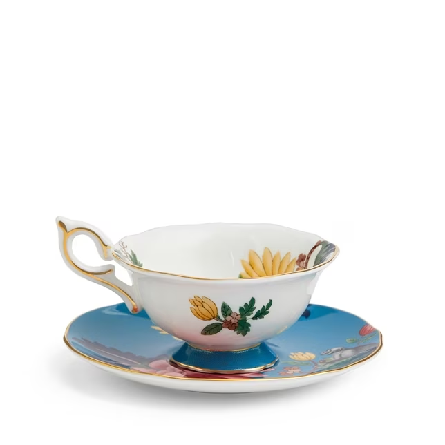 Inspired by the Grand Tour of Asia, Japan, Vietnam and India, go monkey spotting with this Wonderlust Sapphire Garden Teacup & Saucer. A set of outstanding natural beauty, this fine bone china cup and saucer in blue colour palette features gold banding for added luxury. Fauna and flora of the Sapphire Garden pattern decorate both the outside and inside of the cup, for a little treat when you finish your tea. Presented in our signature Wedgwood blue gift box.